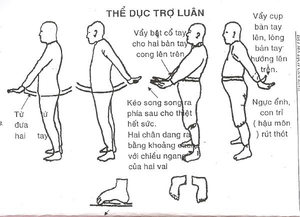 f. Dùng sức vẫy tay về phía sau, để hai tay trở hai phía trước theo quán tính, tuyện đối không dùng sức, chân vẫn lấy ân, hậu môn co lên không lòi.