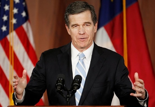 Thống đốc bang Bắc Carolina Roy Cooper phát biểu tại một cuộc mít tinh hồi năm 2016. Ảnh: Reuters.