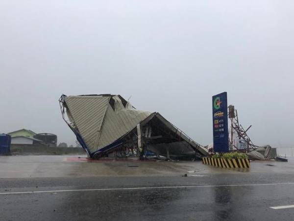 Một trạm xăng ở đảo Luzon đổ sập khi bão Mangkhut tiến vào mờ sáng nay. Ảnh: TWITTER
