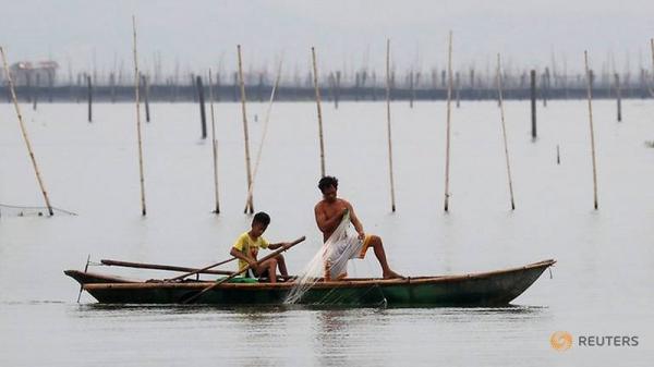 Ngư dân thu lưới trước bão Mangkhut tại khu vực đánh bắt cá ở hồ Laguna de Bay, đảo Luzon (Philippines) ngày 14-9. Ảnh: REUTERS