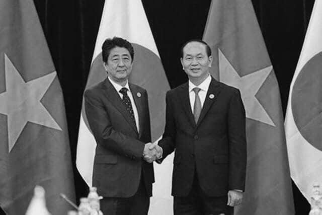 Thủ tướng Shinzo Abe cho biết, Ngài Chủ tịch Nước Trần Đại Quang đã đại diện cho đất nước Việt Nam tiếp đón nồng hậu Nhật Hoàng và Hoàng hậu Nhật Bản nhân chuyến thăm cấp nhà nước tới Việt Nam vào mùa Xuân năm ngoái. Năm nay, nhân dịp kỷ niệm 45 năm thiết lập quan hệ ngoại giao giữa hai nước Nhật Bản và Việt Nam, Ngài Trần Đại Quang đã có chuyến thăm cấp nhà nước tới Nhật Bản từ cuối tháng 5 tới đầu tháng 6, Ngài đã cống hiến hết mình cho quan hệ hữu nghị giữa hai quốc gia.