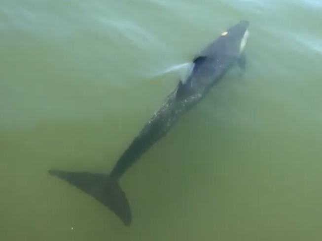 Cá heo bơi lạc vào sông Hói Lăng. Ảnh: CTV