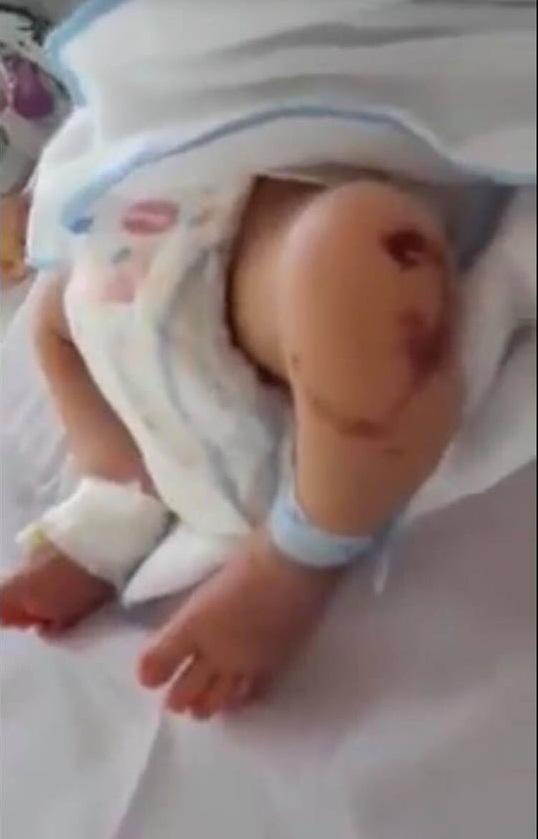 Trên cơ thể cháu bé có nhiều vết xước