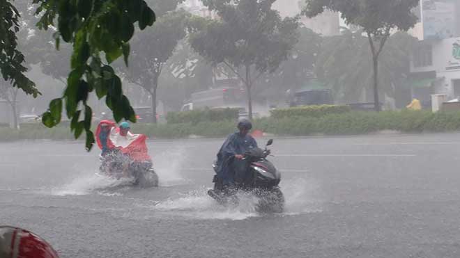 1 giờ sau cơn mưa, phố Sài Gòn mênh mông nước.
