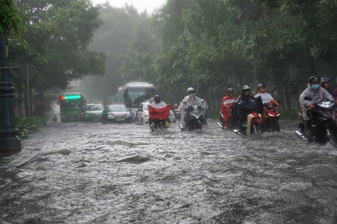 Nước ngập khắp nơi sau cơn mưa 1 giờ.