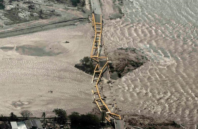 Cây cầu hư hỏng nặng tại Palu, miền Trung đảo Sulawesi. Ảnh: Reuters.