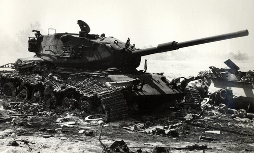 Xe tăng Israel bị phá hủy trong ngày đầu cuộc chiến Yom Kippur. Ảnh: Wikipedia.