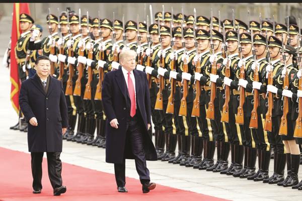Chủ tịch Trung Quốc Tập Cận Bình (trái) và Tổng thống Mỹ Donald Trump duyệt đội danh dự tại lễ đón ở Bắc Kinh Trung Quốc, ngày 9/11/2017.