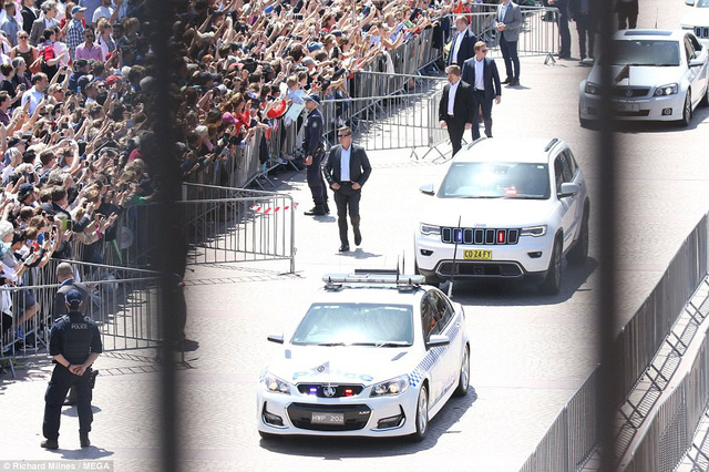 Chuyến thăm của Hoàng tử và Công nương được cảnh sát bảo vệ rất nghiêm ngặt. Australia đã huy động lực lượng an ninh dày đặc để đảm bảo sự an toàn cho cặp đôi Hoàng gia. (Ảnh: MEGA)