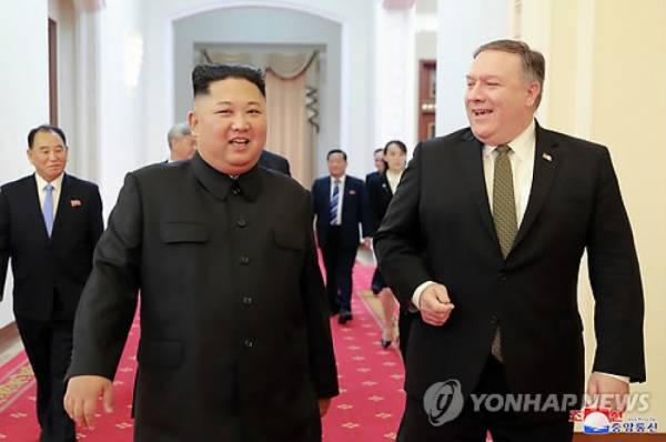 Ngoại trưởng Mỹ Mike Pompeo (phải) gặp Nhà lãnh đạo Triều Tiên Kim Jong-un ngày 7/10.