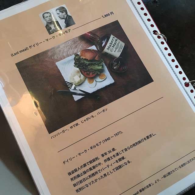 Nhà hàng này tái hiện bữa ăn cuối cùng của những tên tội phạm người Mỹ nổi tiếng như Gary Mark Gilmore, Judy Buonoano, John Wayne Gacy…bọn họ đều là những kẻ giết người tàn bạo.