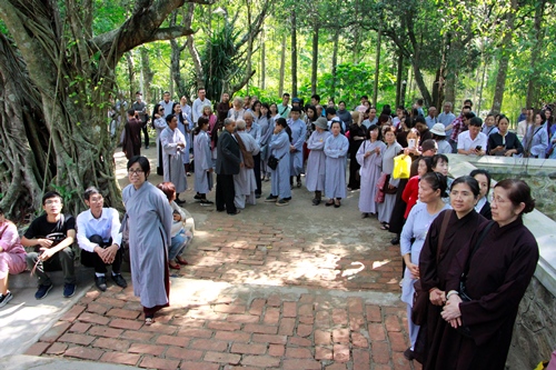 Thiền sư Thích Nhất Hạnh thiền hành cùng phật tử. Thiền sư sẽ ở tại đây cho đến cuối đời. Nhiều người cảm thấy may mắn khi có duyên tháp tùng thiền sư Thích Nhất Hạnh vãn cảnh chùa.