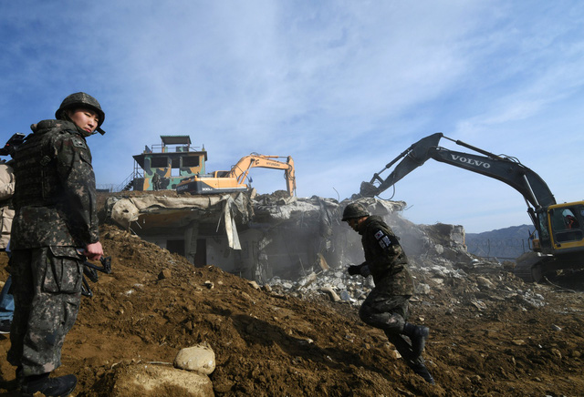 Quân đội Hàn Quốc ngày 15/11 đã mời một nhóm phóng viên tới chứng kiến sự kiện phá hủy một trạm gác quân sự bằng thuốc nổ tại khu vực biên giới Cheorwon giáp với Triều Tiên. Các phóng viên được yêu cầu đứng cách xa hàng trăm mét trong lúc vụ nổ được thực hiện. Sau đó, họ tiếp tục chứng kiến cảnh các binh sĩ và công nhân san phẳng một trạm gác khác bằng xe ủi.