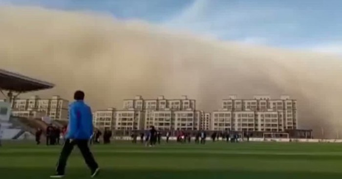 Theo BL Daily đưa tin, chính quyền địa phương Trung Quốc thông báo tình trạng bão cát khẩn cấp báo động vàng, bởi một trận bão cát cao khoảng 100 mét vừa tấn công nhiều thành phố tỉnh Cam Túc của nước này với nhiều ngôi nhà bị nhấn chìm trong bụi cát.