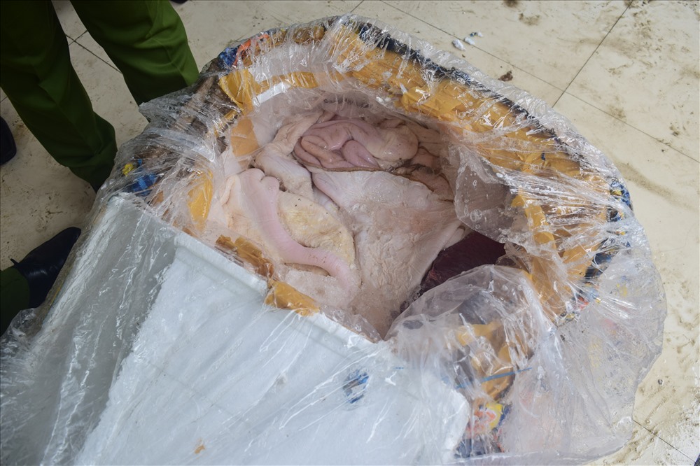 Qua kiểm tra, lực lượng Công an phát hiện trên xe đang vận chuyển 37 thùng nội tạng động vật với tổng trọng lượng hơn 2.500 kg. Tại thời điểm kiểm tra, tài xế không xuất trình được hóa đơn chứng từ chứng minh nguồn gốc của sản phẩm.