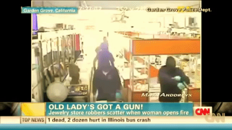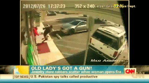 Được biết, người phụ nữ đã 65 tuổi và là chủ cửa cửa hiệu trang sức. Vì lo sợ tính mạng của bản thân và các khách hàng có thể bị đe dọa nên bà phải hành động thật nhanh. Tuy nhiên, bà từ chối bình luận về hành động anh hùng của mình.