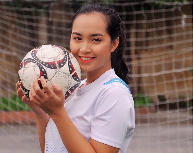 Đá bóng giúp Vân luôn tự tin và năng động. Ảnh: Thùy An