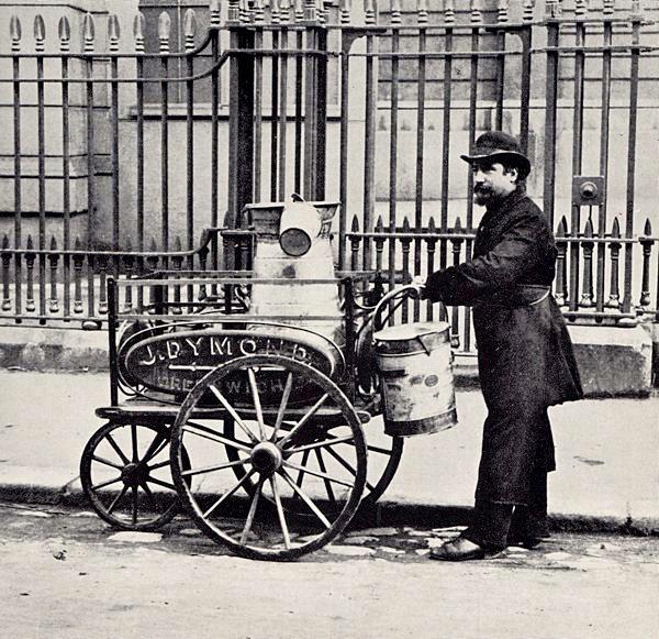 ​​​​​​​ ​​​​​​​ Cùng với nghề làm bánh, việc bán và giao sữa trên các xe đẩy cũng là hình ảnh phổ biến trên đường phố London. Những người bán hàng sẽ đựng sữa trong các bình lớn rồi đẩy xe chào hàng qua từng nhà.
