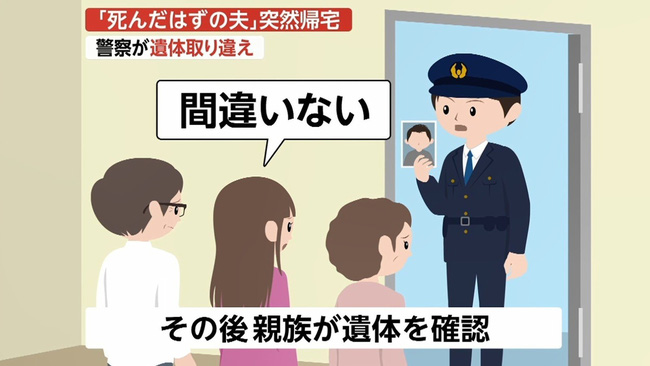 Mọi chuyện tưởng chừng như không có gì bất thường cho người vợ tự tay và gia đình đã nhận xác chồng, lại đã làm đám tang cho chồng, nay chồng bất ngờ xuất hiện trước cửa nhà, còn sống và vô cùng khỏe mạnh khiến người vợ ngỡ ngàng chẳng ngờ mình đã gây ra nhầm lẫn tai hại trong quá khứ, vì vậy truyền thông Nhật Bản gọi sự việc hiếm có này lạ đời hơn cả câu chuyện trong tiểu thuyết, vậy mà nó vẫn có thể xảy ra ngoài đời thực.