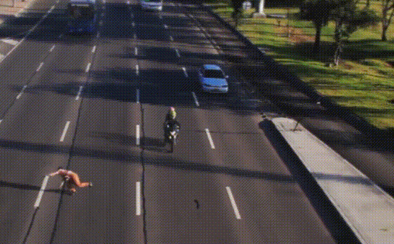 Tuy nhiên, tất cả chỉ là một “cú lừa”. Thực chất, khi quay đoạn video này, anh đã phải căn lúc các phương tiện cách xa hàng trăm mét rồi mới dám thực hiện màn nhào lộn.