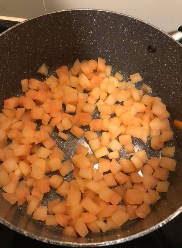 - Hoà bột năng vào bát nước nhỏ. Đổ vào xoong nước đường khuấy đều.