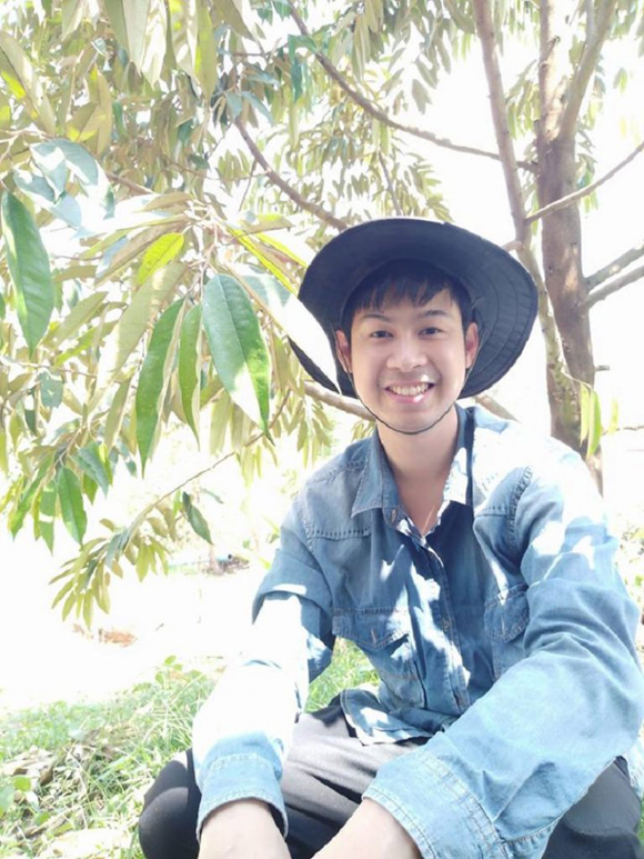 Khongsai bên vườn sầu riêng của gia đình ở tỉnh Trat, Thái Lan. Ảnh: Facebook.