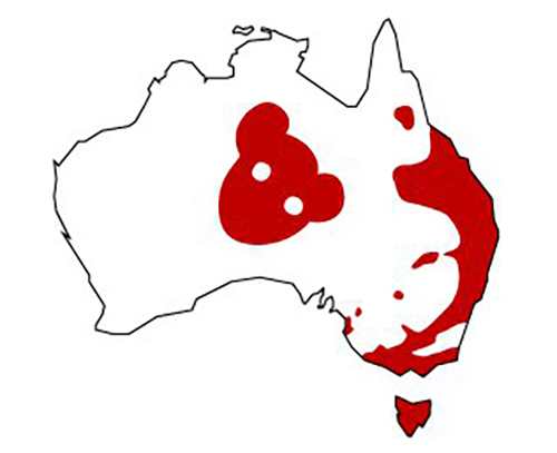 Bản đồ chỉ ra khu vực phân bố gấu nhảy trên trang web của bảo tàng Australia. Ảnh: Australian Museum.