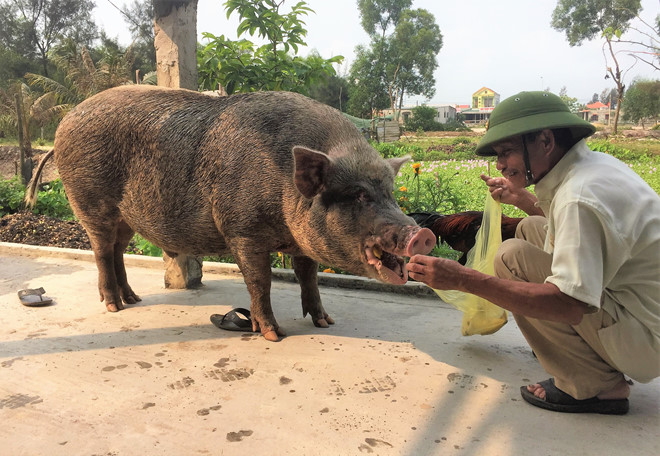“Không ai mua thì tui để nuôi chớ có chi mô (gì đâu - PV) hè”, ông Trường nói. Lạ ở chỗ, càng lớn thì con heo càng nghịch, nó cứ nhảy khỏi chuồng ra bên ngoài “ăn chơi”, đến giờ ăn thì nhảy vào ăn, xong lại nhảy ra. Thấy tình hình không ổn, ông Trường bèn đưa nó ra trang trại ở cách nhà khoảng 1 km để nuôi.