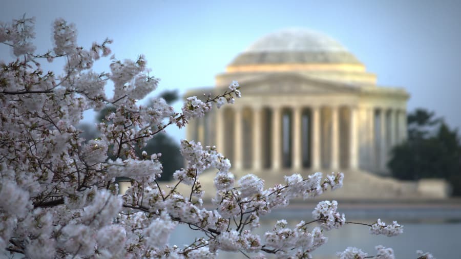 Hoa anh đào ở thủ đô Mỹ sẽ “đạt đỉnh” trong vài ngày nữa. Vậy nên nếu bạn muốn đến thủ đô nước Mỹ ngắm hoa anh đào, thì đây là thời điểm thích hợp nhất.