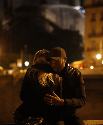 Dọc theo cây cầu Pont au Change nối cung điện Conciergerie trên đảo Ile de la Cite với quảng trường Châtelet ở bờ phải sông Seine, hàng trăm người chết lặng nhìn lửa và khói bốc lên trên bầu trời đêm. Nhiều người lẩm nhẩm hát Ave Maria bằng tiếng Latin, trong đó có Stephane Seigneurie, 52 tuổi, người đã sống ở Paris 25 năm.