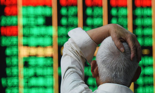 Một nhà đầu tư Trung Quốc quan sát bảng chứng khoán điện tử. Ảnh: VisualChinaGroup.