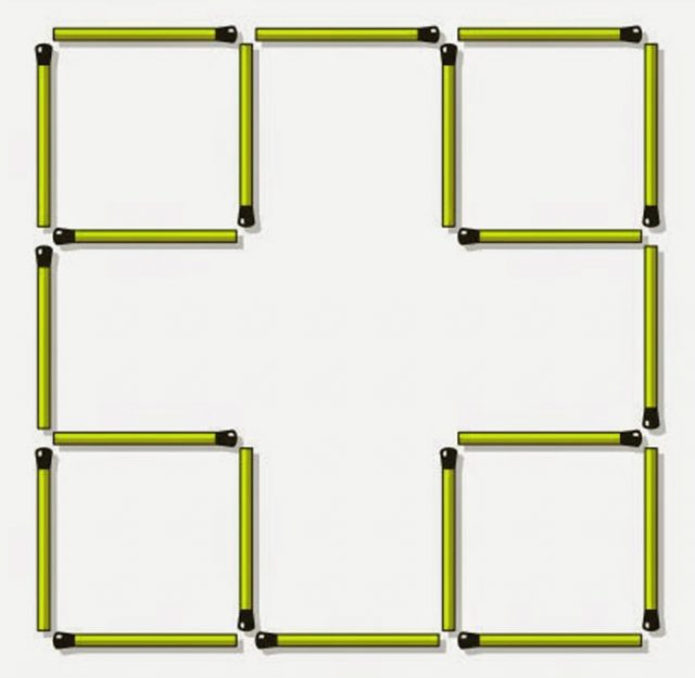 5. Hãy di chuyển 2 que diêm để tạo thành 7 hình vuông.