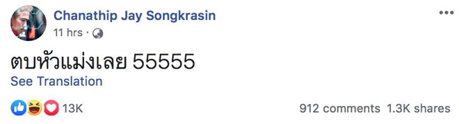Có nhiều CĐV lại tỏ ra hả hê với dòng chia sẻ của Chanathip khi sau cùng, đội tuyển Thái Lan vẫn để thua Việt Nam ngay trên sân nhà: "Cầu thủ Thái Lan tát Việt Nam nhưng thủ môn Kawin lại dội nguyên gáo nước lạnh vào các CĐV nước nhà".