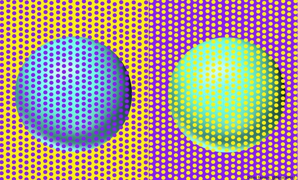 Hiểu một cách đơn giản, các hình ảnh ta thấy được đều là do não bộ quyết định, và nó chịu ảnh hưởng từ nhiều yếu tố. Với việc màu nền khác nhau, màu sắc của vật thể cũng bị thay đổi trong nhận thức của não bộ. Như trong bức ảnh dưới đây, các vòng tròn thực chất có màu sắc giống hệt nhau, chỉ bị đổi do màu sọc khác nhau thôi.