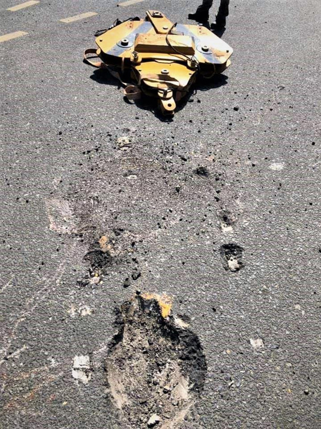 Ngày 2/7, mạng xã hội lan truyền hình ảnh một móc cẩu rơi từ trên cao xuống đường Võ Nguyên Giáp (quận Sơn Trà, TP Đà Nẵng), rất may không trúng người đi bên dưới nhưng khiến mặt đường lún khoảng 20 cm.
