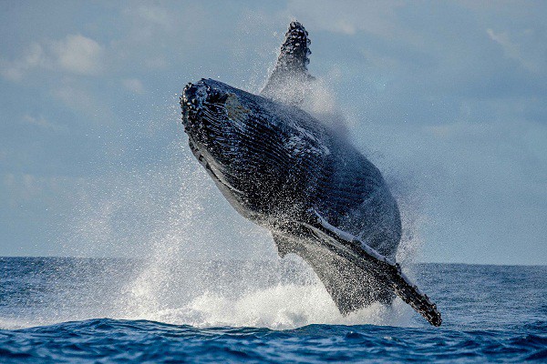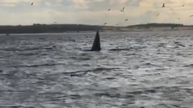 Dù chỉ mới trông thấy chiếc vây khổng lồ của chú cá voi từ xa, nhiều du khách đã không giấu được nỗi phấn khích của mình mà hò reo vui sướng.