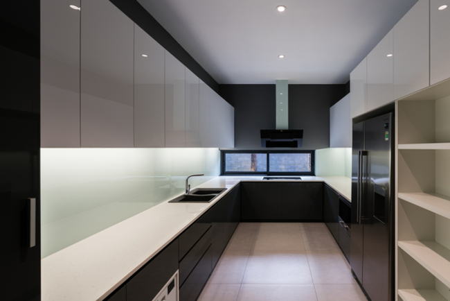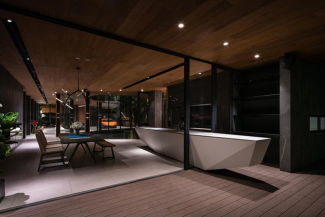 Tầng hầm ngôi nhà có sức chứa tới bảy chiếc xe, với một sân trung tâm để lấy ánh sáng tự nhiên và thông gió.