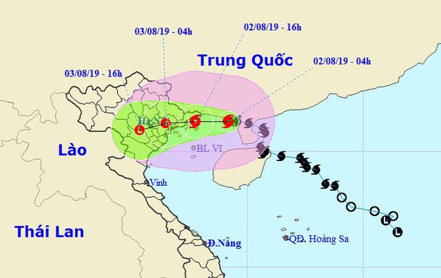 Dự báo trong 12 giờ tới, bão di chuyển theo hướng Tây, mỗi giờ đi được 5-10km. Đến 16h ngày 2/8, vị trí tâm bão ở khoảng 21,3 độ Vĩ Bắc; 107,8 độ Kinh Đông, ngay trên bờ biển Quảng Ninh-Hải Phòng. Sức gió mạnh nhất vùng gần tâm bão mạnh cấp 8-9 (60-90km/giờ), giật cấp 12.