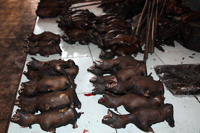 2. Dơi nướng là một món ăn phổ biến ở Indonesia, chúng được phục vụ trên các xe đẩy bên đường hoặc cả trong nhà hàng sang trọng. Hầu hết các đầu bếp sẽ làm sạch lông, loại bỏ cánh và đầu sau đó xắt nhỏ để làm món hầm hoặc xào.