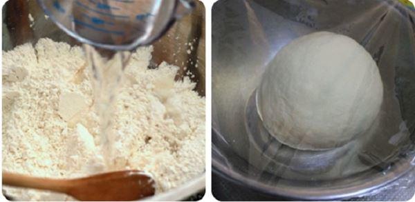 - Khi nhào bột, bạn đổ nước từ từ, vừa đổ vừa nhào để bột không bị nhão.