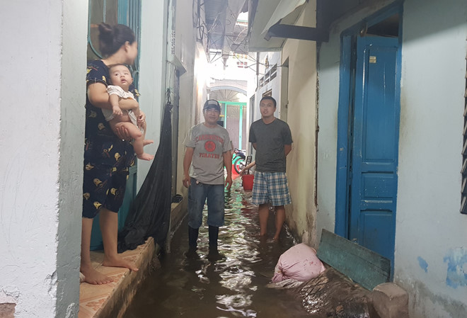Ẵm con nhỏ trên tay, chị Lê Thị Cẩm Thúy (32 tuổi) cũng than thở: “Xóm có 7 nhà mà hết 3 người bị sốt xuất huyết rồi. Tôi cũng bị và phải nhập viện khi con chưa tròn 3 tháng nữa, mất sữa cho con tới nay luôn. Cứ ngập như thế này mãi thì không biết còn bao nhiêu người phải vô viện, chưa kể bất tiện đủ thứ”.