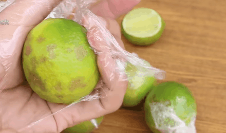 - Sử dụng nilon bọc thực phẩm bọc thật sát toàn bộ quả chanh. Lưu ý là phải bọc thật sát và kín.