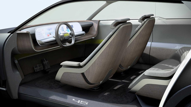 Hai bên cửa xe là các hộc chứa đồ với các vách ngăn trong suốt, dễ dàng để những quyển sách hay máy tính bảng phía trong. Hệ thống thông tin giải trí có giao diện dạng máy chiếu, thay thế màn hình cảm ứng trung tâm bằng nhiều màn hình nhỏ hơn tích hợp thẳng vào bảng điều khiển.
