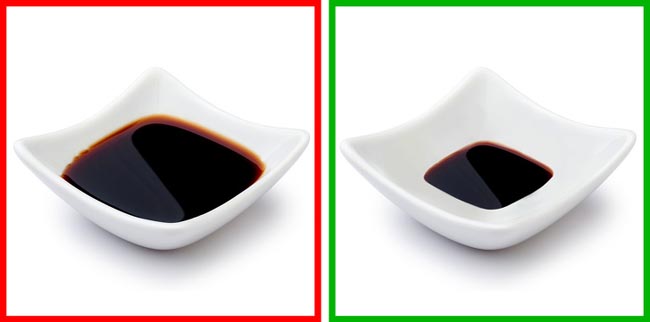 Hầu hết mọi người đã quen với việc chấm toàn bộ miếng thức ăn vào 1 bát nước tương, nước sốt nhưng đây là cách ăn chưa đúng. Người Nhật thường đổ 1 chút nước tương vào và chấm đồ ăn rất nhẹ. Việc dùng quá nhiều nước chấm sẽ khiến đồ ăn bị lấn át mất hương vị.