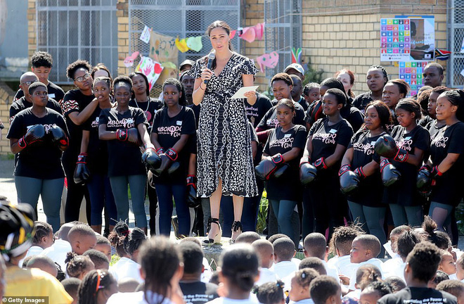 Vợ chồng Hoàng tử Harry có những hoạt động sôi nổi, vui vẻ trong ngày đầu tiên của chuyến công du đến Nam Phi, nhưngi Meghan Markle lại bị chê trách vì trang phục kém sang, để lộ những khoảnh khắc hớ hênh, khi đã thay trang phục, lựa chọn chiếc váy màu đen trắng trị giá 69 bảng Anh của hãng Mayamiko và đi giày đế xuồng.