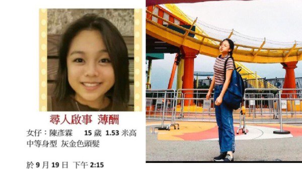 Thông báo tìm người tên Trần Ngạn Lâm xuất hiện từ đêm ngày 24/9, được lan truyền trên các nhóm Telegram và diễn đàn Lihkg. Thông báo nói, Trần Ngạn Lâm 15 tuổi, cao 1,53 mét, lần cuối cùng chia tay bạn bè là lúc 2:15 chiều ngày 19/9, 10 phút sau, cô nhắn tin cho bạn mình nói đang trở về nhà.