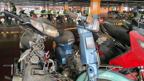 Hàng trăm xe máy gửi ở bãi xe của Cảng hàng không quốc tế Tân Sơn Nhất mà không ai đến lấy. Xe đến nay đã quá hạn gửi, xe máy bụi, bung hộp đèn, xẹp lốp, rơi biển số,…...