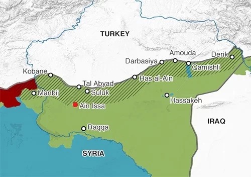 Quân đội Thổ Nhĩ Kỳ đang tấn công các vị trí của lực lượng SDF với nòng cốt là Các đơn vị Bảo vệ Nhân dân người Kurd (YPG) tại khu vực đông bắc Syria. Thổ Nhĩ Kỳ coi YPG là tổ chức khủng bố và muốn đẩy lùi lực lượng người Kurd 30 km về phía sau biên giới để tạo vùng đệm an toàn.
