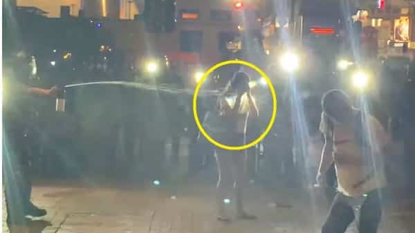 Trên mạng internet lan truyền một đoạn video ngắn, có thể thấy một cô gái qua đường khi đi qua trước mặt một nhóm cảnh sát, đã bị cảnh sát dùng xịt nước cay, có vẻ như họ coi đây là trò tiêu khiển. (Ảnh cắt từ video)