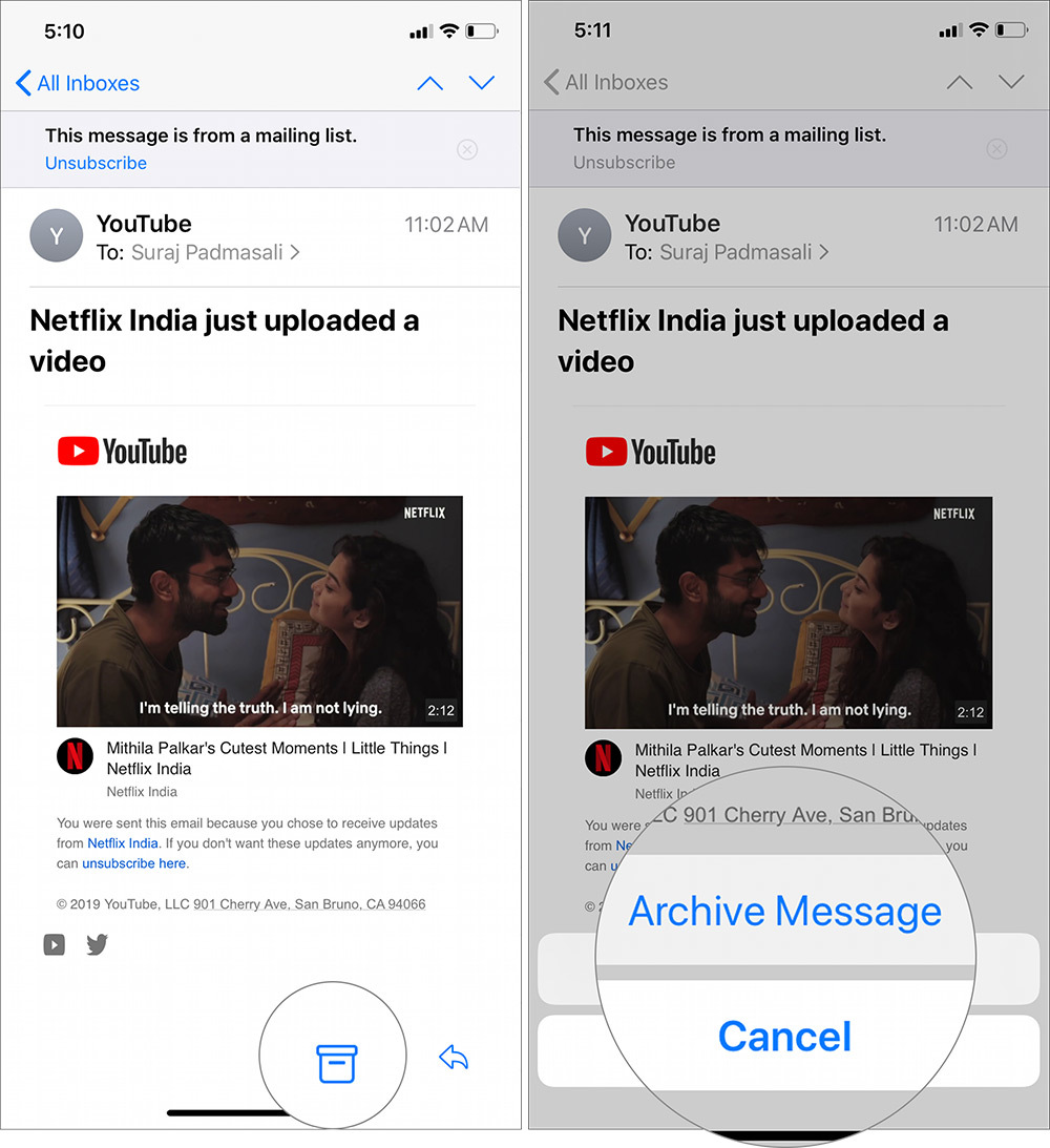 Lưu ý: Không phải tất cả email đều có nút xóa nằm ngay bên cạnh nút trả lời. Đôi khi nó sẽ là nút Archive (Lưu trữ). Điều này hoàn toàn phụ thuộc vào loại email bạn đang sử dụng trên iPhone là Gmail, Outlook.com, Yahoo! Mail…
